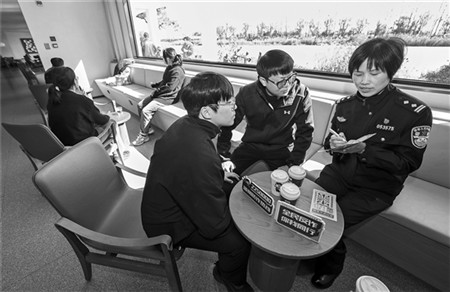 近日,浙江省湖州市吴兴区道场派出所民警在民宿里给外地游客宣传反诈知识。 临近岁末,当地派出所民警深入到辖区的民宿餐厅、咖啡店、博物馆及村民家中,对游客和村民进行形式多样的反诈宣传,进一步增强群众的反诈意识,守护好百姓的“钱袋子”。 新华社记者 徐昱/摄 《工人日报》(2025年11月27日07版)