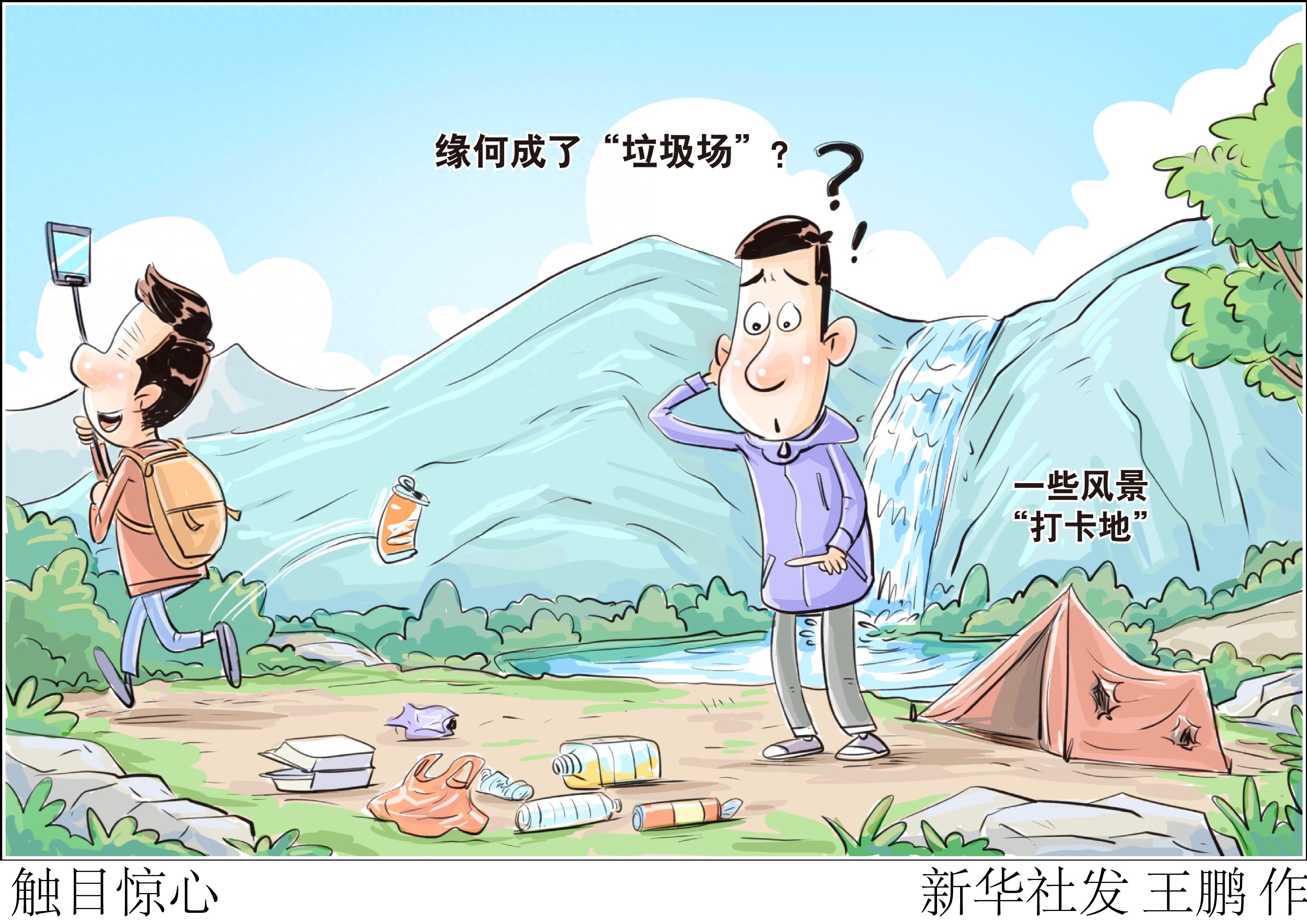 塑料水瓶、易拉罐、食用油桶、食品包装袋、塑料袋、一次性餐盒、废旧帐篷……近日,“新华视点”记者调查发现,在一些小众景点或徒步路线附近的山林间、河道里,不少垃圾肆意散落,触目惊心。