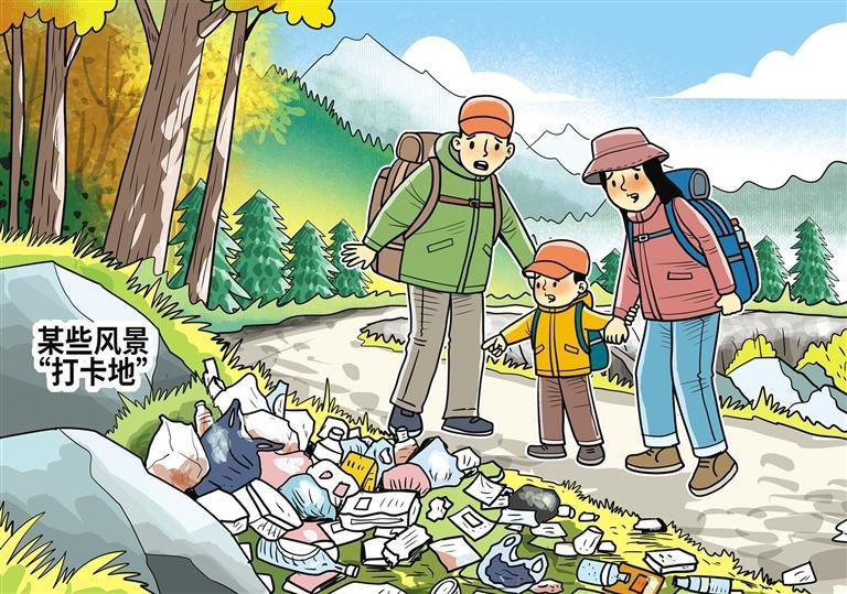 塑料水瓶、一次性餐盒、废旧帐篷……近日,在一些小众景点或徒步路线附近的山林间、河道里,不少垃圾肆意散落。据游客反映,一些成熟的徒步路线,沿途也时常见到各种垃圾。部分游客或户外爱好者环保意识不够强,加上小众景点没有明确的管理机构和责任主体,缺少垃圾桶等基础设施和处理力量,垃圾难以被及时清运。这不仅影响游客体验,还会引发一系列生态环境问题,甚至埋下安全隐患。对此,属地政府一方面应对小众景点资源进行梳理和评估,加强配套设施建设,对于尚无明确管理主体的景点,牵头建立协同治理机制,与文旅、自然资源、水务、生态环境等部门交叉联动、形成合力;另一方面也需健全约束与惩罚机制,加大对游客不当行为的处罚力度,筑牢生态保护防线。