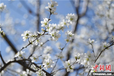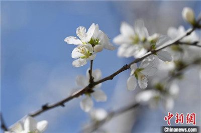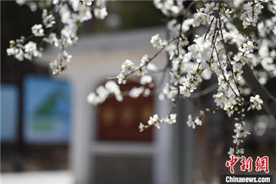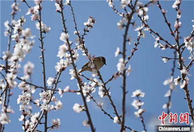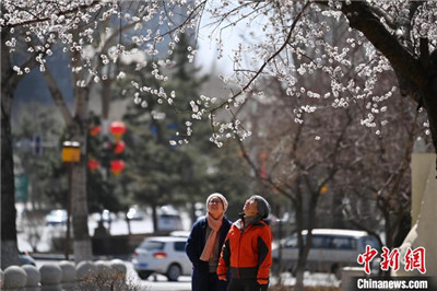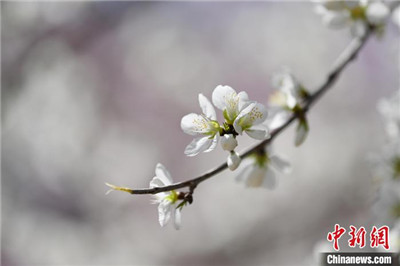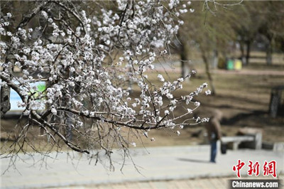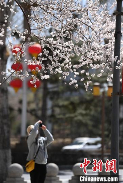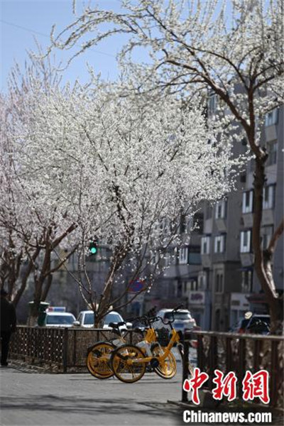 4月7日,长春街头桃花竞相开放,为城市增添许多春天的色彩。