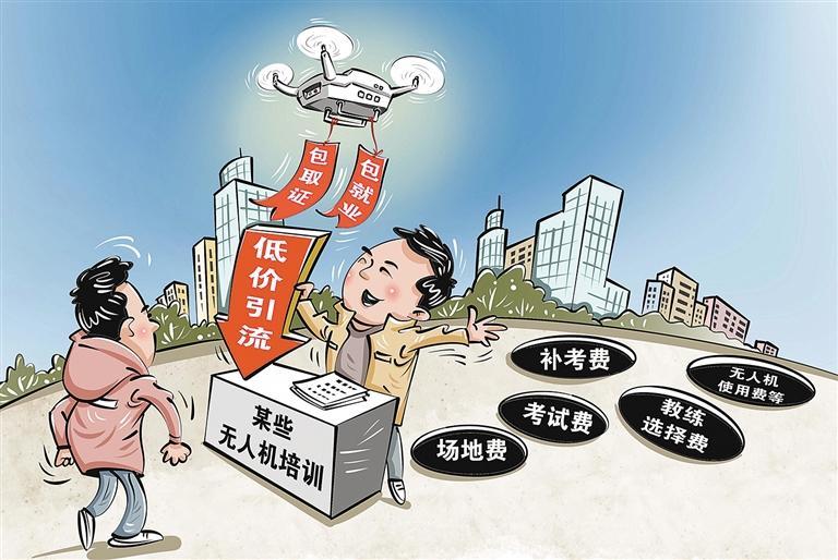 近年来,无人机培训异常火热,截至12月15日,今年无人机培训相关企业注册数量已超过15500家;而去年同期,这一数据仅为4200多家。行业繁荣的背后也有乱象。为了抢客源,有的机构先低价引流,后续在培训考试过程中补收场地费、考试费、教练选择费、无人机使用费等各种费用。有的机构打出“包取证”“包就业”等噱头,实则为虚假承诺。还有的机构无办学资质,不少人上当受骗。对于这类问题,有关部门应加强执法检查,及时查处、清理违法违规现象,杜绝不合规机构钻漏洞,同时督促线上平台下架相关不实广告信息,避免更多人遭受损失。行业内部也应出台自律公约,规范市场秩序,引导企业经营好口碑,降降行业虚火。