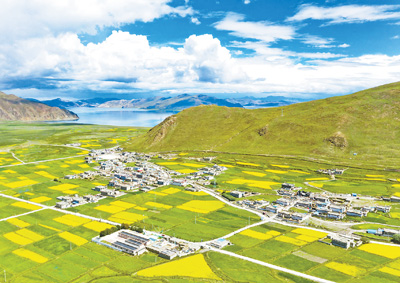 西藏自治区浪卡子县道布龙村地处羊湖旅游带,近年来,当地发挥区位优势,持续推进文旅开发。在安徽援藏工作队的支持下,道布龙村开展农村人居环境整治项目,提升居住条件和生活质量。参与项目建设的当地群众达3140余人次,带动增收160余万元。 图为近日拍摄的道布龙村,依山傍水,阡陌纵横。 本报记者 徐驭尧/摄 《人民日报》(2023年07月25日第02版)