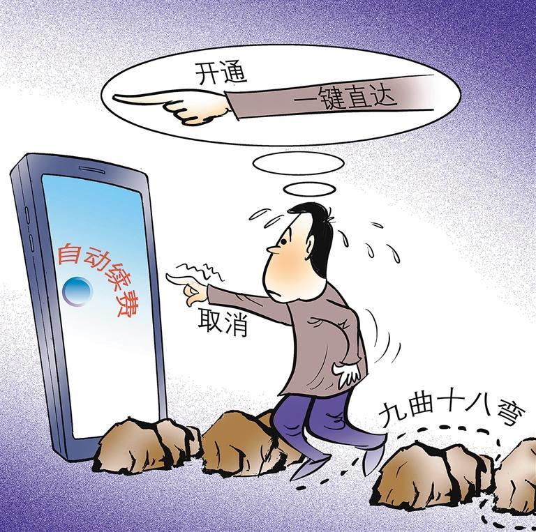 会员服务已渗透至日常生活的各个角落,“首月低价”“连续订阅享优惠”等低价营销,吸引不少消费者开通自动续费。然而,近日有调查发现,不少平台暗藏“猫腻”:有的并未以显著方式提前提醒用户续费;有的设置复杂取消路径,许多消费者被悄无声息扣费数月甚至数年,维权过程费时费力。在某第三方投诉平台,自动续费相关投诉超20万条,看似省心的操作竟成了甩不掉的负担。治理这种不诚信、不公平的经营行为,需要强化行业自律,由行业协会或监管部门牵头制定行业规则,对自动续费进行规范;加强行政监管,明确平台须履行“强提醒”义务,确保取消流程与开通流程同等便捷;加大执法力度,通过引入惩罚性赔偿机制,形成有效震慑。