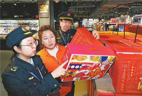 近日,北京市石景山区市场监管局聚焦礼盒、茶叶、保健食品、化妆品等重点品类,开展过度包装规范整治行动。本次行动以大型商超等为重点场所,现场核查商品包装是否符合国家标准,严厉查处包装层数超标、空隙率过高、包装成本与销售价格比例失衡等违法行为。 本报记者 董芳忠摄影/报道