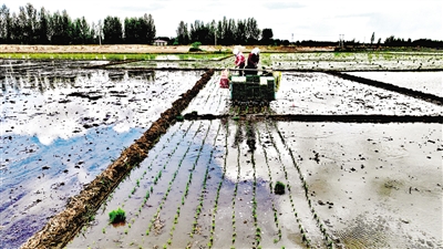 时下,正值北方水稻插秧季节。今年,内蒙古自治区赤峰市敖汉旗古鲁板蒿镇种植绿色有机水稻品种,稻谷品质好、亩均单产高。近年来,古鲁板蒿镇大力发展现代生态农业,充分利用老哈河的独特地理环境优势,积极发展生态农业,以稻为媒,积蓄绿色势能,激活发展潜力。在深入推进产业发展、有效遏制耕地抛荒、拓宽村民增收渠道的同时,兼顾生态环境,走出一条“生态+产业”的乡村新“稻”路。