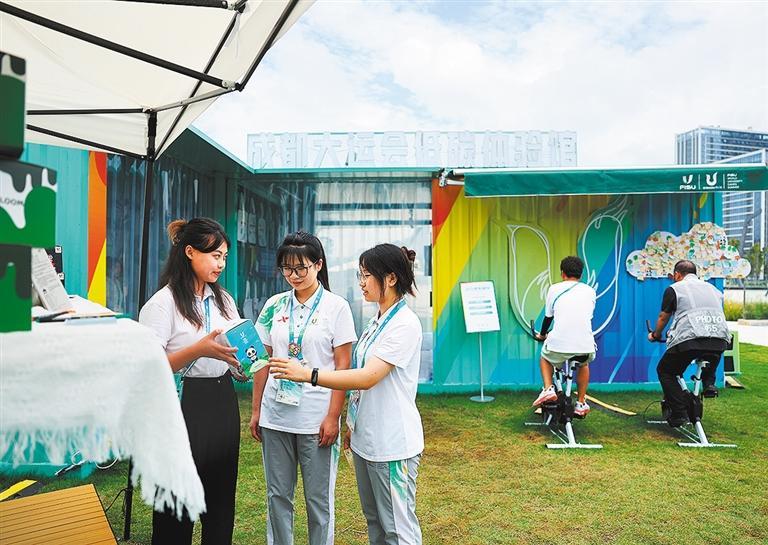 位于成都市高新区的轻松驿站经过融合改造,化身“成都大运会城市志愿服务小站”,充分体现绿色、生态、环保、节约理念。高兴贵/摄