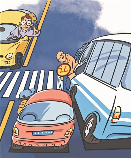 据《新华每日电讯》报道,近日,一段北京公交司机伸手示意提醒后车共同礼让行人的视频收获无数网友点赞。视频显示,这位司机行驶中注意到路边有两位行人推着共享单车准备过马路,在停车让行的同时通过后视镜观察到左后方有即将通行的社会车辆,于是伸手示意后车停车,避免了“鬼探头”事故。
