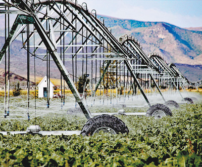 8月28日,内蒙古自治区林西县新林镇,节水灌溉设施正在作业。内蒙古7个盟市农业水价综合改革总任务2370万亩,截至7月底,已实施2278万亩,占总任务的96%。 内蒙古农业水价综合改革工作开展以来,节水成效初步显现。2016年到2022年,全区亩均用水量由305立方米下降到214立方米,农田灌溉水有效利用系数由0.532提高到0.574。 李富/摄(人民视觉) 《人民日报》(2023年08月30日第02版)