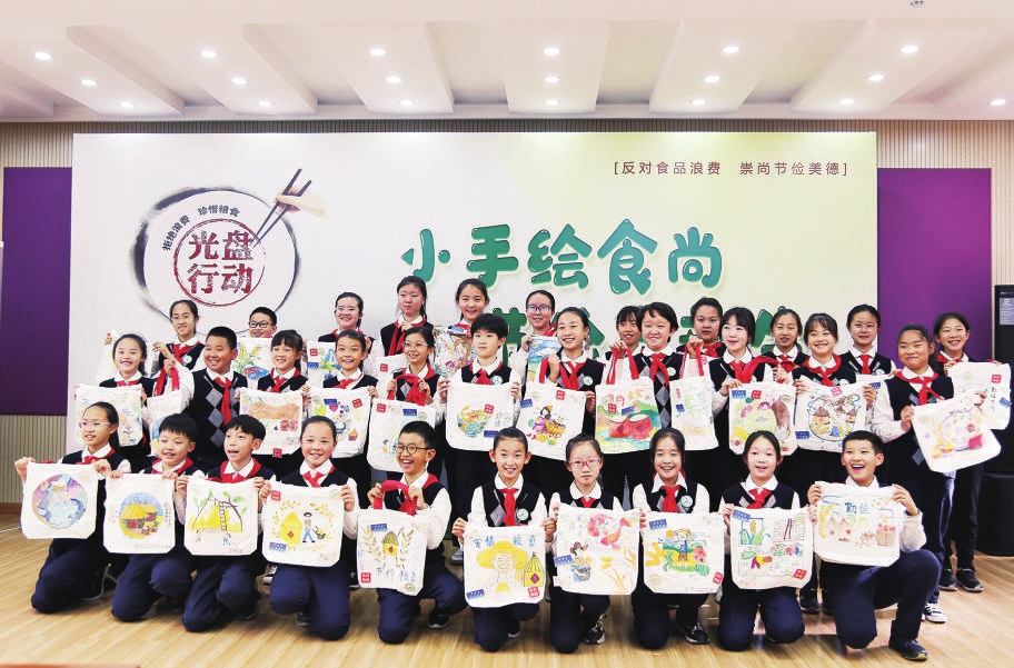 一粥一饭,当思来之不易。为增强学生节约粮食、崇尚节俭的意识,近日,北京市石景山区市场监管局在北京市爱乐实验小学开展主题为“小手绘‘食尚’节俭有新生”反浪费宣传活动。活动中,市场监管工作人员不仅通过视频动画的形式介绍了食品浪费的相关知识,组织学生在帆布袋上进行DIY涂鸦创作,最后,学生们创作的一件件“艺术品”还被贴上了定制徽章,以示鼓励。