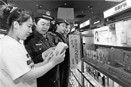 为保障消费者用妆安全,规范化妆品经营者行为,近日,北京市丰台区市场监管局开展化妆品安全专项检查,重点对化妆品专营店、大中型商超等进行监督检查,检查内容包括化妆品经营单位证照、进货台账及化妆品标识标签、批准文号等,避免出现经营假冒伪劣化妆品、“一号多用”等违法违规行为。 本报记者董芳忠/摄影报道 中国消费者报(2023年10月26日第3版)
