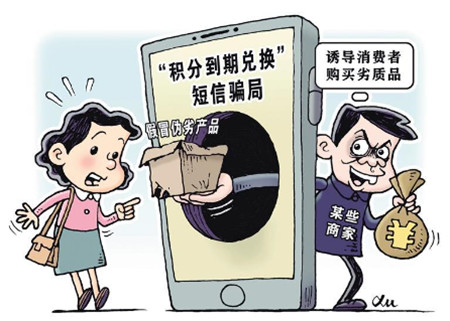 “您有XX积分未使用,到期将失效,请立即登录积分商城兑换商品……”近来,很多人都曾收到类似短信。这些看起来颇有诱惑力的优惠,实际上很可能是消费陷阱。“消费积分清零”骗局由来已久,真假难辨。其中一部分是来自银行、品牌商家、运营商等通过短信提醒消费者,及时将会员积分兑换成商品或者服务。但也有部分商家企图通过设置虚假链接、提供“补差价”福利等套取消费者个人信息、销售假冒伪劣商品等,侵害消费者合法权益。对此,消费者遇到通过补差价、结合现金等形式购买商品或服务的积分兑换活动,要慎重消费,留心比对商品信息和实际价值;如发现受骗,应向市场监管、公安、网信等部门以及消费者保护组织举报,形成全社会的打击合力。