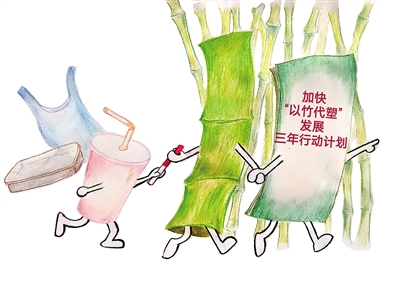 竹子作为速生、可降解的生物质材料,是塑料的重要替代品。为助力减少塑料污染,11月2日,国家发展改革委等部门联合印发《加快“以竹代塑”发展三年行动计划》,鼓励发展竹产业循环经济,推行全竹利用产业模式,强化竹加工废弃物循环利用,加强竹材综合利用技术装备推广应用。提出到2025年,“以竹代塑”产业体系初步建立。程维嘉/制图 中国环境报(2023年11月15日第03版)