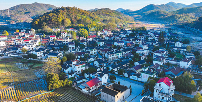 安徽省芜湖市繁昌区近年来着力打造美丽乡村,推进村容村貌整治,优化乡村生态环境,完善乡村公路建设融合农旅发展,使乡村变得更加生态、美丽、宜居,提升了百姓的获得感、幸福感、安全感。 图为繁昌区孙村镇中分村,错落有致的民居与多彩的田园相映成趣。 鲁君元/摄(人民视觉) 《人民日报》(2023年11月24日第18版)