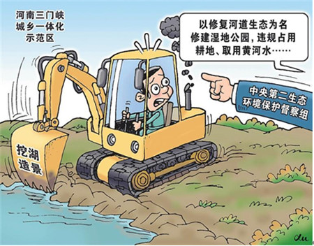 违规占用耕地490余亩,取用黄河水25万立方米,修筑堤坝阻断黄河干支流正常连通……日前,中央第二生态环境保护督察组在河南省三门峡市发现,三门峡市城乡一体化示范区以修复河道生态为名挖湖造景,在黄河一级支流上修建湿地公园,影响河道行洪安全。督察组将进一步调查核实有关情况,并按要求做好后续督察工作。《中华人民共和国河道管理条例》明确规定,在河道管理范围内,禁止修建围堤、阻水渠道、阻水道路。督察组成员表示,违规挖湖造景往往伴随着违规占用耕地和违规取用水资源行为,会对生态环境保护和可持续发展产生不利影响。各地尤其是生态环境脆弱地区,要切实强化生态环境保护意识,从源头上杜绝此类现象。