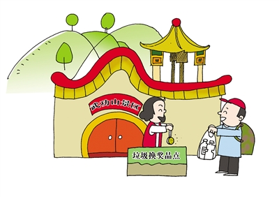 江西武功山是国内徒步爱好者向往的游玩胜地之一,但景区内垃圾随意丢弃现象比较突出。为此,武功山景区设计了垃圾换奖品的奖励机制,游客在景区捡拾塑料瓶等垃圾,可以到指定地点兑换景区文创产品或者奖牌。 沈海涛/制图 中国环境报(2023年12月8日3版)