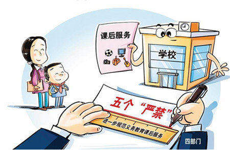 教育部办公厅、国家发展改革委办公厅、财政部办公厅、国家市场监督管理总局办公厅日前联合印发通知,进一步规范义务教育课后服务有关工作。通知提出五个“严禁”:严禁随意扩大范围、严禁强制学生参加、严禁增加学生课业负担、严禁以课后服务名义乱收费、严禁不符合条件的机构和人员进校提供课后服务。自“双减”实施两年多以来,课后服务工作取得积极进展,受到群众普遍欢迎。但在实施过程中,有的地方和学校也出现了一些不规范的行为,个别地方和学校随意扩大课后服务范围,以课后服务名义乱收费,增加了家庭教育负担。通知的印发将在规范课后服务工作的同时,锚定“双减”目标,不断完善课后服务体系,强化课后服务育人功能,提高课后服务质量,满足学生多样化学习需求。