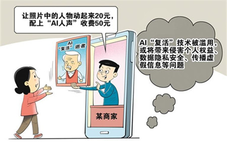 仅需一张照片和一段逝者录音,就能在数字世界中让逝者“永生”……清明节前后,此类AI“复活”广告宣传在各大电商和社交平台上日益活跃,甚至演变成一门新“生意”。技术的发展为满足人们的精神与情感需求提供了更多载体,与此同时,也有专家提出,AI“复活”技术被滥用,或将带来侵害个人权益、数据隐私安全、传播虚假信息等问题。此外,逝者生前的个人信息、聊天记录等“数字遗产”能否继承,目前没有明确法律规定。对于谁有权使用、如何避免不当获取、使用时应遵循何种规范等问题,仍需进一步明确。技术创新永无止境,其应用应有道德边界和法律规范。应抓紧完善相关法律法规,警惕AI“复活”技术可能产生的社会风险。