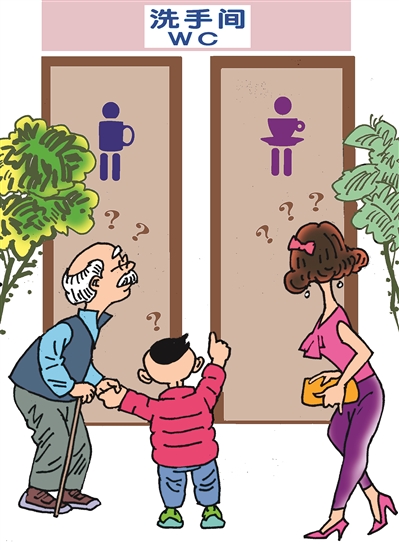 据1月17日中新网报道,近日,“老伯看不懂英文误入女厕被指非礼”相关话题登上热搜,当事人表示由于商场厕所标识为英文和图案,他误进女厕被指责。事后商场向老伯道歉并进行了厕所标识优化整改。记者调查发现,公共卫生间性别标识不清的问题,在医院、景区等不少地方都存在,有些没有中文标识、只有抽象图案,让人看了一头雾水。