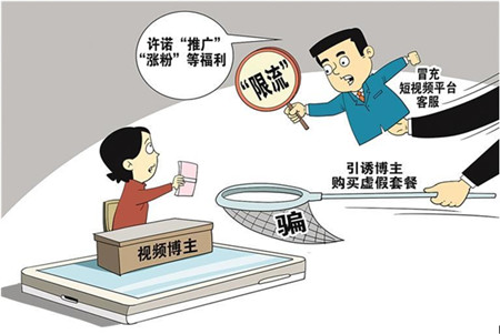 冒充短视频平台客服,以“限流”为要挟,同时许诺“推广”“涨粉”等福利,引诱博主购买虚假套餐,从而达到诈骗钱财的目的,受害短视频博主逾万人……2023年12月份以来,江西省九江市浔阳区警方对一起电信网络诈骗案发起全面打击,打掉一特大电信网络诈骗团伙,抓获犯罪嫌疑人89名。相关“客服”将所在的团伙包装成“科技公司”,通过非法途径购买短视频博主相关信息,从中挑选适合的诈骗对象,并使用技术手段非法篡改短视频博主主页标签,让短视频博主误以为自己的短视频账户被限流,借机推销600元至2380元的服务套餐,称可以帮他们解除“限流”。用户要警惕此类骗局,平台也应担负起加强平台安全性建设的责任。()