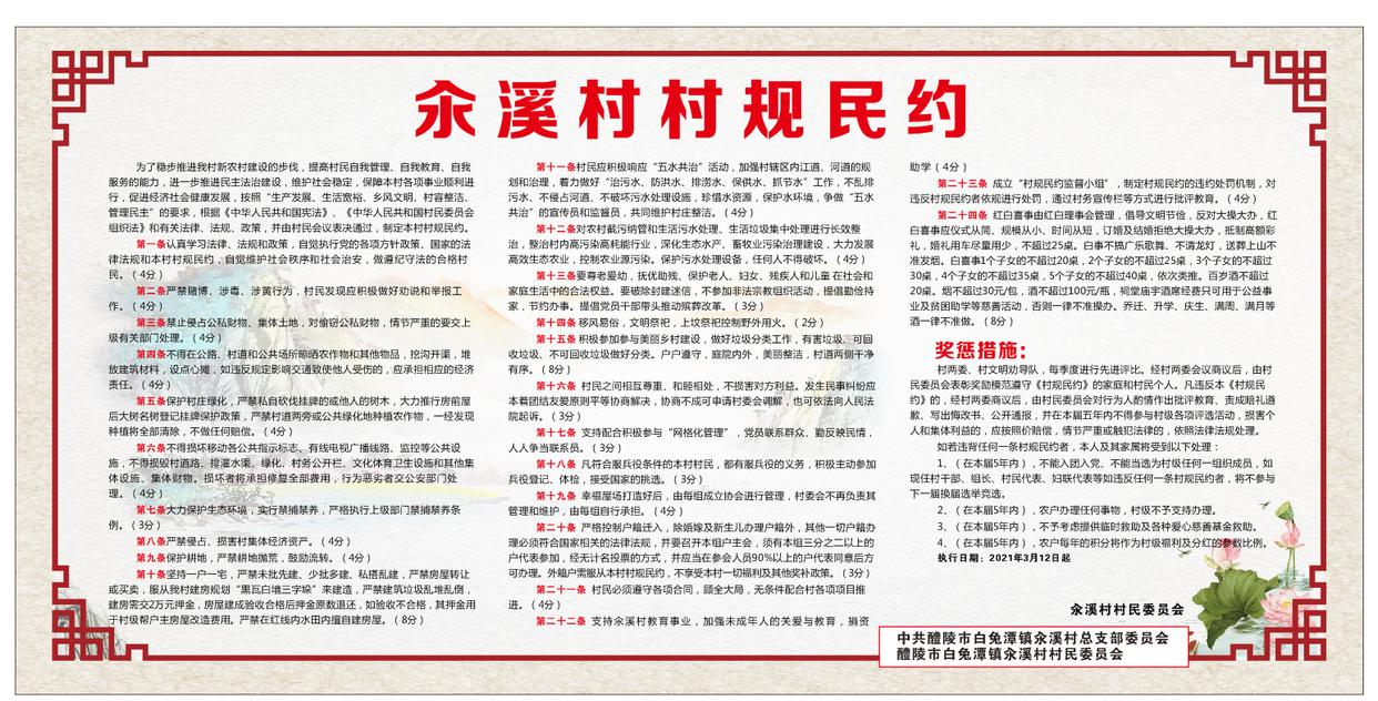 最新版《汆溪村村规民约》的执行日期为2024年3月12日起,并注明了:最终解释权归汆溪村村民委员会所有。