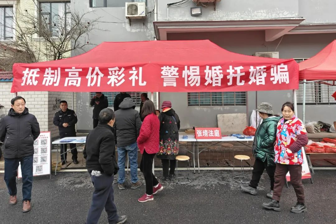 为贯彻落实中央一号文件部署,进一步促推移风易俗,治理高额彩礼,近日,湖北黄冈蕲春法院张塝法庭联合镇政府、派出所、司法所等部门联合开展“抵制高额彩礼,警惕婚托婚骗”法治宣讲活动。