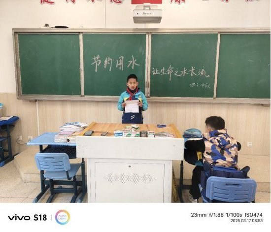 活动现场设置了节水知识竞答环节,题目涵盖家庭节水技巧、水法常识及冰川保护知识,师生踊跃参与,气氛热烈。部分题目源自“学习强国”平台“世界水日”每日答题活动,部分改编自水利部发布的网络答题题库。此外,全体师生承诺践行“一水多用”“随手关龙头”等节水行为,并通过班级群分享家庭节水妙招,形成辐射效应。