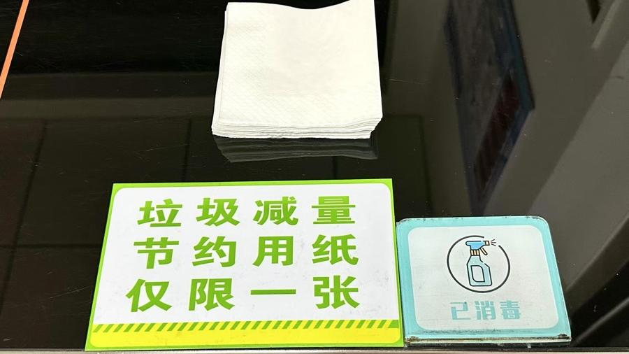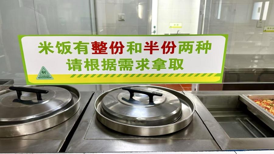 在长宁区政府2号院食堂,处处可见帮助源头减量的“小心机”——大餐盘换成了小餐盘,米饭有整份和半份两种,餐巾纸则限取一张。