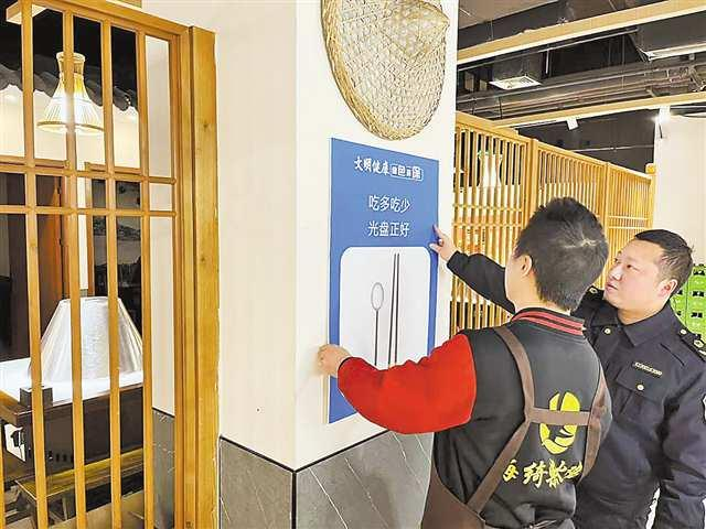 “节俭养德”“光盘行动”“本店提供小份菜、打包服务”……近日,记者走访江津区圣泉街道万达广场内的部分餐饮店发现,店内都放置、张贴了引导市民文明用餐的提示牌、宣传画。