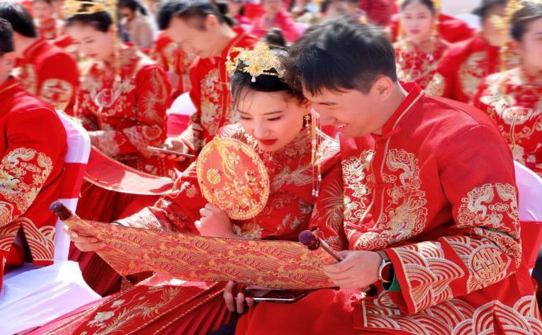 “今天婚礼的每个环节都情意绵绵,让我感受到更多的优秀传统文化。移风易俗不是消灭传统,而是让美好习俗获得与时俱进的表达方式。”徐闯、沈婧夫妇代表新人在仪式上致辞,激动的心情溢于言表。
