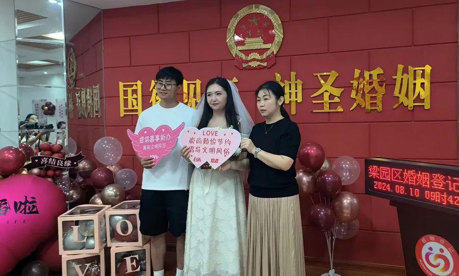 “为进一步破除陈规陋习,推进移风易俗,树立时代新风,切实增强我区居民的幸福感和获得感,我们破旧立新,提倡婚事新办、廉办、简办。每到婚礼登记高峰,梁园区民政局都会组织婚姻登记处所有人员放弃休息日,为爱加班,为年轻人办理结婚登记手续,助他们顺利步入婚姻殿堂,驶向幸福港湾。”梁园区民政局副局长杨茜在接受记者采访时说。