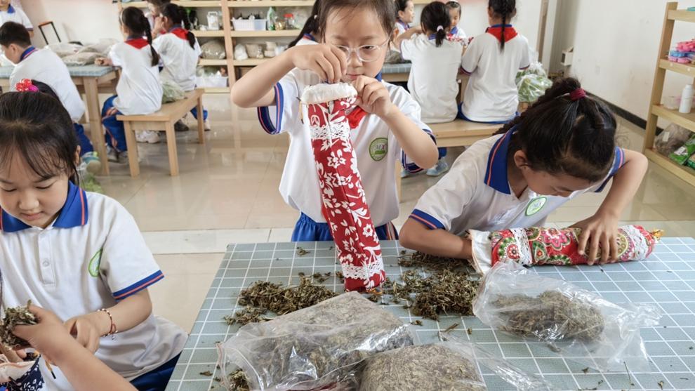 5月14日,河南省安阳市梅东路小学开展“巧手制香枕 节俭传文明”主题实践活动,二年级学生通过用闲置布料、边角料与天然艾草制作养生枕头,在劳动实践中感悟节约理念,传承文明风尚。
