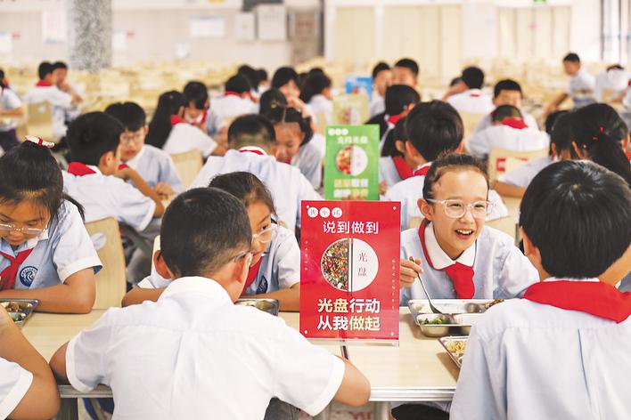 近年来,安徽省合肥市庐阳区教体局在各中小学深入开展“光盘行动”,推动中小学实行“分组就餐,按需取餐”的管理机制,通过光盘打卡、餐后厨余称重、光盘积分兑换等多种形式,引导学生养成良好的用餐习惯,弘扬勤俭节约的传统美德。