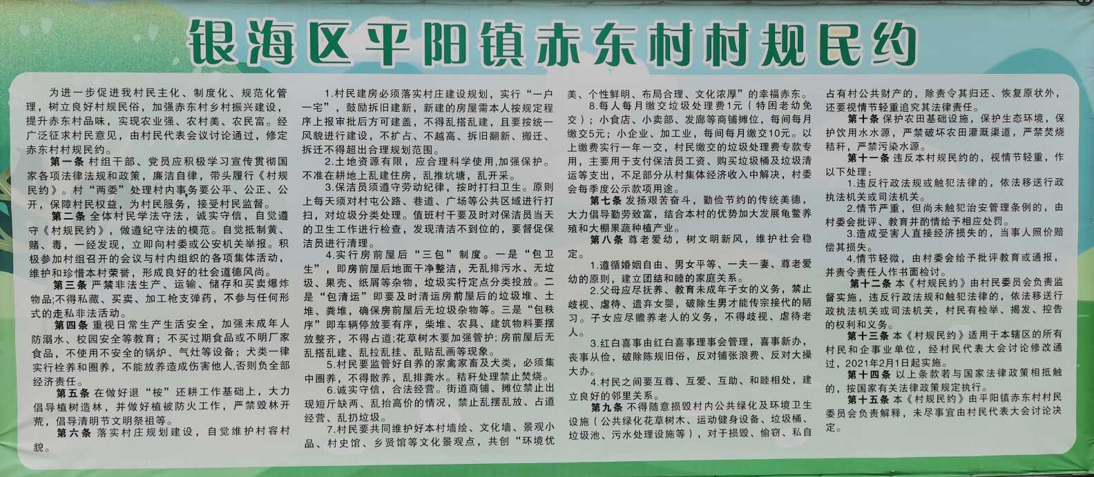 “喜事新办,丧事从俭,破除陈规旧习,反对铺张浪费……”走进平阳镇赤东村,宣传栏的村规民约醒目亮眼,一股文明新风正从字里行间走进家家户户的日常生活。近年来,广西北海市银海区平阳镇赤东村以村规民约为抓手,破解陈规陋习难题,让移风易俗从“纸上规定”变成“身边实景”,绘就了一幅乡风文明新画卷。