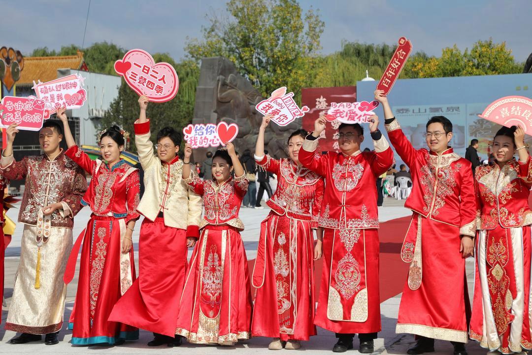 10月18日上午,“海誓山盟爱在岱岳”——山东省泰安市岱岳区新时代集体婚礼在天平湖畔举行,10对新人及家庭以实际行动践行“新事新办婚事简办”理念,共同迎接人生重要时刻。