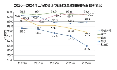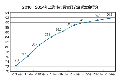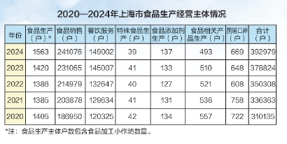 食品安全事关人民群众身体健康和生命安全,是最基本、最普惠的民生诉求之一,是人民群众获得感、幸福感和安全感的重要基础支撑。 2024年,上海各区、有关部门按照“四个最严”要求,严防严管严控食品安全风险,持续推进食品安全治理体系和能力的现代化。 过去一年,上海主要食品的食品安全总体监测合格率为99.4%,比2023年提高0.2个百分点,继续保持较高水平;连续3年未报告发生集体性食物中毒事故和其他重大食品安全事件,集体性食物中毒发生率继续保持在2011年以来不高于1例/10万人口的较低水平。 这一年,上海市民食品安全知识知晓度评分为91.6分,市民食品安全状况总体满意度评分为91.5分,食品安全状况保持总体有序可控、稳定向好的态势。 值此新春佳节来临之际,由上海市食药安办、市市场监管局编制的《2024年上海市食品安全状况报告》(白皮书)正式出炉,并授权本报独家首发。这已是上海连续14年向社会发布食品安全白皮书,持续将申城食品安全状况向社会公开。 地产食品发力 要了解一座城市的食品安全状况,食品供给结构是一扇观察窗。不同的供给结构下,优势和挑战各不相同。 “寸土寸金”的上海无法彻底实现食用农产品的自给自足,比较近年来的数据,这方面的对外依赖程度还在加重。 2024年,上海食用农产品总消费量约2100万吨,比2023年多出约100万吨,其中80%要靠外省市供应才能满足,该比例比2015年高出了10个百分点。 同时,还有大量食品为“舶来品”。2024年前11个月,上海口岸进口食品32.2万批次、932.5万吨重。肉类(包括杂碎)、乳品、水产及制品类是2024年前11个月上海口岸进口金额最大的三类食品,分别为734.8亿元、340.2亿元、193.9亿元。 食品依赖外部供应,风险较高。因此,上海近年来加强本地食用农产品供应能力建设,增强抗风险能力。 以蔬菜为例,2021年,上海地产蔬菜出现“拐点”——蔬菜专业合作社数量及产量止住了逐年减少的势头。截至2024年底,上海有蔬菜专业合作社862户,虽然数量比2023年减少了两成,但上市供应地产蔬菜258.6万吨,是2019年以来上市供应量最大的一年,反映了上海蔬菜专业合作社规模化发展及产业技术水平的提升。 上海地产水产品也出现了相似的“好苗头”。2024年,上海892个水产品养殖基地供应水产品9.9万吨,是2019年以来供应量第二大年,仅次于2023年的10万吨,这还是在水产品养殖基地比2023年减少了6个的基础上,可见上海水产品养殖基地规模和产能的稳定。 三大地产食用农产品中,生猪的情况不一样,上海域内生猪年出栏量已连续两年下降,在2024年下降至58.6万头,比2022年减少了34.9%。不过,2024年117家规模生猪养殖场的数量只比2023年少了2家,从业者数量相对稳定的基础上,生猪年出栏量的大幅减少,既是消费端变化的体现,也反映了行业正处于转型升级的风口。 积极的一面是,上海部分域内出栏生猪甚至供应到了外省市,这种用优质产品进军竞争更激烈市场的尝试值得鼓励。另一组数据也显现了追求高质量发展的趋势:2024年,上海有效期内绿色食品企业1144家,产品2454个,获证产量164.1万吨,绿色食品认证率达32.6%。 上海地产食用农产品的产量逐步回升,本地主要食用农产品批发交易市场的数量也结束了大幅减少的趋势,进入稳定期。2024年,上海16家主要食用农产品批发市场一年批发交易的粮食、肉类、禽蛋、水产品、蔬菜等各类食用农产品为1049.1万吨,比2023年增加约2.8%,对全市食用农产品总消费量的贡献率从2022年的三成反弹至目前的五成。 “流通”充满活力 尽管本地食用农产品供应能力在逐年增强,但不足以从根本上改变依靠“外援”的食品供给结构,这种结构势必需要强大的食品流通产业来支撑,上海早已是一座名副其实的“食品流通城”。 截至2024年底,上海共有食品生产经营主体392979户,同比增加3.7%。其中,61%的食品生产经营主体是主体业态为食品销售的食品经营主体,共有241076户(包括获得食品经营许可证139801户、仅销售预包装食品备案101275户),同比增加4.3%。 该数量是1563户食品生产主体(不含特殊食品、食品添加剂生产,包括获得食品生产许可证1558户、获得食品加工小作坊准许生产许可证5户)的154.2倍,是149002户主体业态为餐饮服务或单位食堂的食品经营主体(包括获得食品经营许可证144627户、实施临时备案的小型餐饮服务提供者4375户)的1.6倍,足以说明食品销售业态在上海食品生产经营产业中的主导地位。 这种主导地位在2024年进一步巩固:241076户还创下了2019年至今主体业态为食品销售的食品经营主体数量的新高,和2019年相比增加了51%。 进一步分析上海食品销售业,截至2024年底,上海持有效食品经营许可证的食品销售经营主体有139801户,从事批发、零售的食品销售经营主体分别有52365户、87436户,持证食品零售商户占到持证食品销售经营主体总数的62.5%,因此,食品零售业被称作食品销售业“皇冠上的明珠”。食品销售业态的活跃,反映出居民食品消费的热情,印证了上海作为一座“食品流通城”的活力。 此外,2024年,上海对处于经营状态的199578户食品销售经营者实施了食品安全风险分级管理,风险由低到高分为A、B、C、D四个等级。其中,A级经营者占比高达92.6%,B级占比6.5%。 生产转型升级 和食品销售业的繁荣相比,上海食品生产业近年进入了转型期——持证食品生产企业(不含特殊食品生产企业、