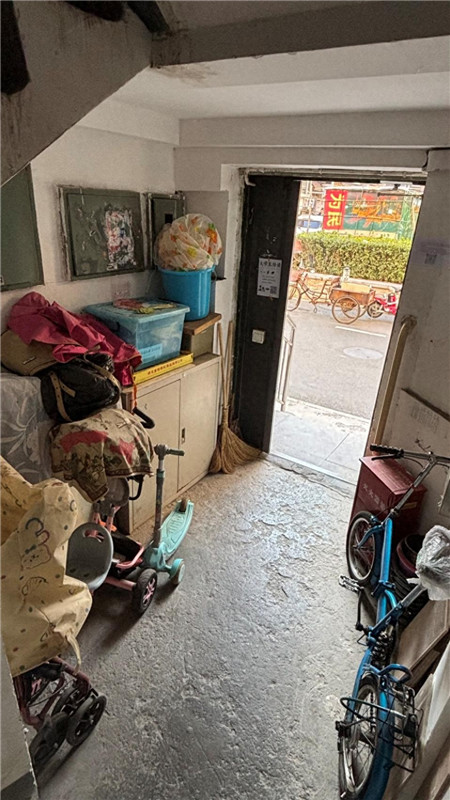 但到了3号楼,情况又不一样。例如在1单元楼门外,浓浓的“生活气息”扑面而来——各式水缸、花盆,填满了扶手与楼体间的缝隙。楼门内,半人高的矮柜靠墙放置,上面堆叠着塑料箱,旁边是孩子的滑板车、自行车、小推车等,犹如来到居民家里的客厅。