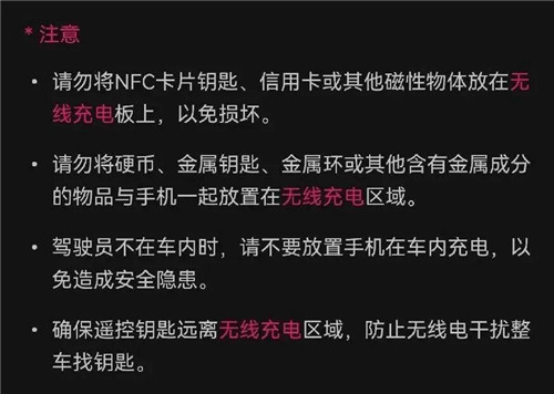 车企一般会告知无线充电注意事项