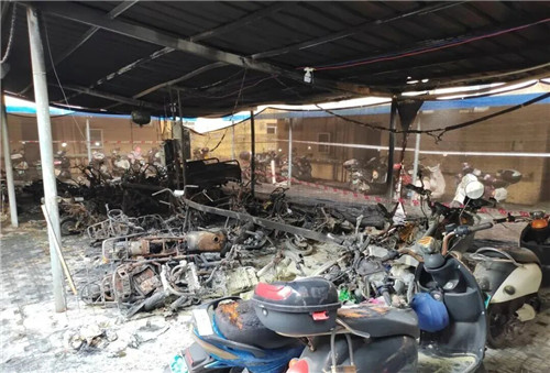 电动自行车车棚陷入一片火海
