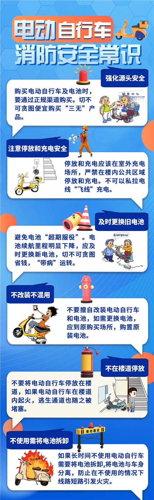 违规改装电动自行车:部分车主擅自改装电动自行车的动力电源,擅自增加电池容量等,破坏整车电气线路的安全性能,充电时容易引发车辆电气线路过载、短路等故障,引起火灾事故的几率相对增大。