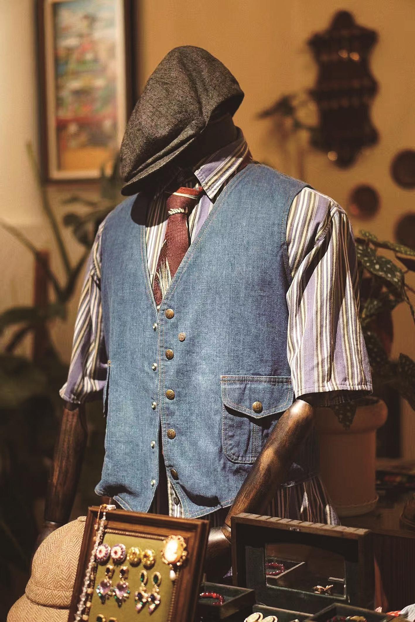 如果说然然的店主打高端配饰循环,金铃的中古服饰店则藏着“复古文化”的魅力。在她的店里,货架上挂满了不同年代的服饰,橱窗里陈列着1773年的英产羊毛帽、上世纪60年代的复古背包,还有关节可动的复古娃娃、限量版玩具,每一件都有独特故事。“开这家店纯粹是因为喜欢,我自己就爱收集中古服饰,它们的剪裁和材质,很多新款都比不了。”金铃说,两年前开店时还担心包头人接受不了“二手服饰”,没想到收获了不少忠实顾客。