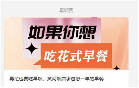 郑州黄河饭店在公众号发布推文,推出自助早餐卡。有市民留言,早餐价格很划算,希望以后能出现午餐或者晚餐的自助年卡。