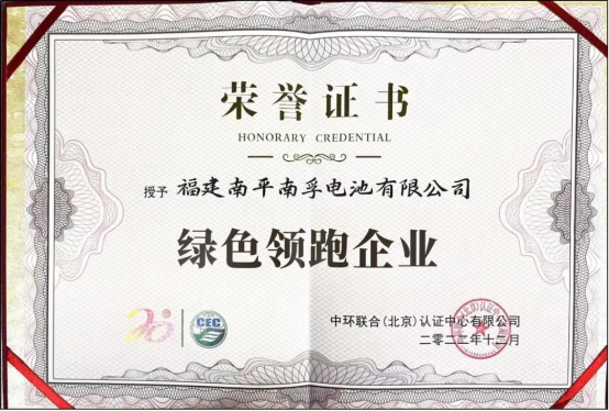 2023年初,南孚电池凭借其在绿色低碳可持续发展方面的卓越表现,荣获中环联合认证中心颁发的“绿色领跑企业”称号。中环联合认证中心作为由原国家环保总局批准设立的权威机构,其评选出的“绿色领跑企业”是指那些将可持续发展视为企业责任,将环境利益和环境管理深度融入企业经营管理全过程,并在行业内取得显著成效的企业。南孚电池获此荣誉,实至名归。