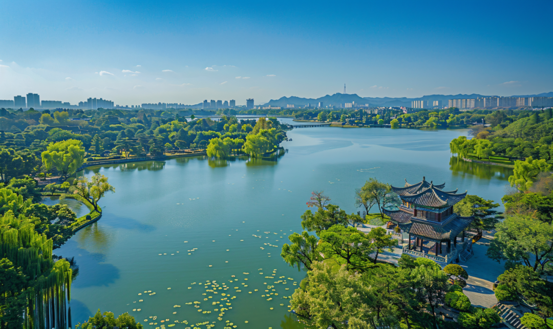 鸟瞰济南大明湖。