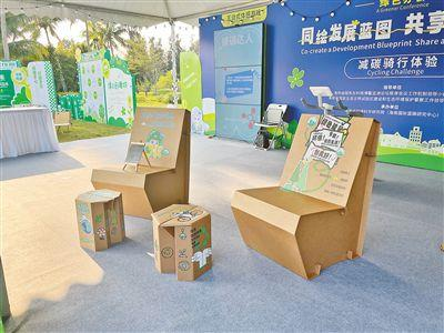 “去年我们设置了低碳体感游戏和减碳骑行体验环节,吸引了2000余人参与。今年我们新增了瓦楞椅制作及手绘环节。”海南省环境科学研究院应对气候变化研究中心负责人胡小飞介绍,瓦楞纸不仅可循环利用,承重能力还极佳,是环保与实用结合的材料,值得推广使用。