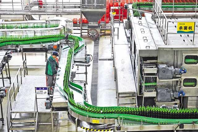 近日,位于大渡口区的重庆钰鑫实业集团有限公司车间,工人正在啤酒生产线上作业。记者 谢智强/摄 视觉重庆
