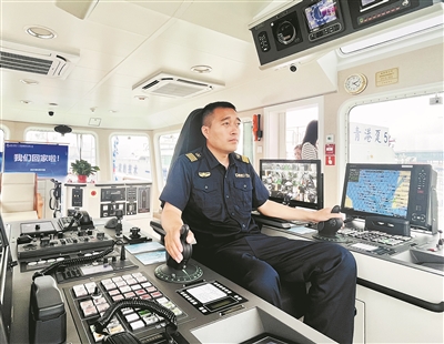 周子祥介绍,驾驶台应用基于北斗技术的多功能集成系统,实现一套系统替代传统ECS电子海图、全球定位系统、船舶自动识别系统,解决了传统船舶设备分散的问题,还为船舶安全航行、船岸协同管理提供了支持。