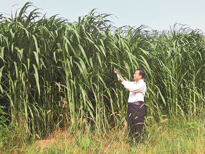 雷学军培育的速生碳汇草能高效捕捉并封存空气中的二氧化碳,修复生态、改善环境——