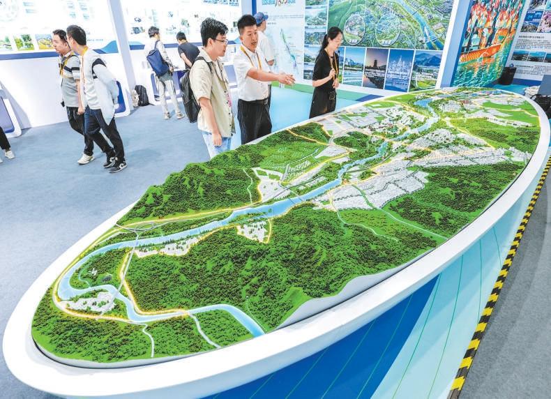 服贸会环境服务专题展上,北京水务投资集团展位展示永定河流域“两园一河”协同联动发展图景沙盘。记者 邓伟/摄