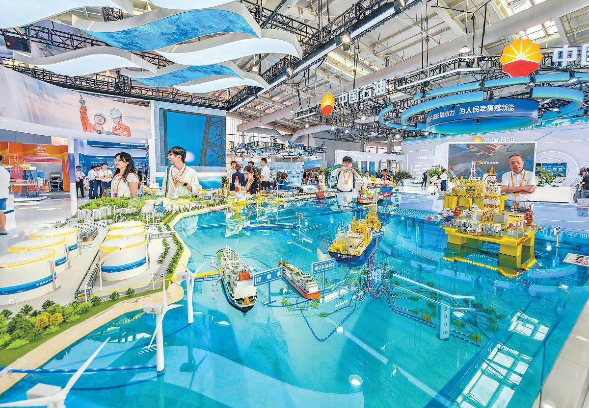 服贸会环境服务专题展上,展示了中国海油产业集群数智沙盘。记者 潘之望/摄
