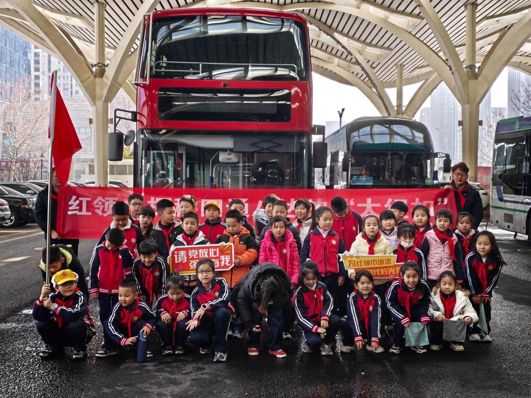 研学途中,驾驶员李超、庞玮带领孩子们体验网红双层巴士“红奔奔”,中国红的亮眼外观搭配舒适的乘坐环境,瞬间点燃了孩子们的热情。大家兴奋地打卡留影,轮流近距离体验驾驶位、模拟操作流程,还主动拿起工具参与车辆卫生清理,在动手实践中体会公交驾驶员的日常辛劳,更直观感受纯电动巴士零排放、低噪音的环保优势。